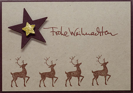 Die gestrigen Deko-Verpackungs-Hirsche haben mich zu dieser Karte inspiriert und daher sind gleich einige wirklich ratzfatz entstanden. Natürlich in der gewohnten schlichten Form. Ich finde sie aber trotzdem hübsch, Ihr auch ????